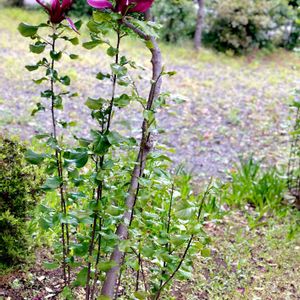 木蓮がこんな咲き方しているのは初めて見ました🥰 新しく生えてきた枝の先に一輪ずつ咲いています💜💜✨ 木蓮の花はもうとっくに終わったかと思っていましたが、今頃咲くのもあるんですね。
