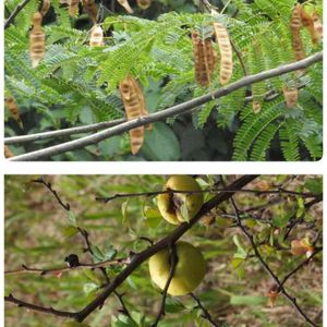 荒川自然公園にて⑨ 上:ネムノキの実 下:クサボケの果実→日本固有の落葉低木でボケとは異なり枝が横に広がって草上にたちあがる。 果実は3~4cmで黄色く熟す。 クサボケを家の庭に植えると火事を招くとする俗説がある。 📷 2018.9.13