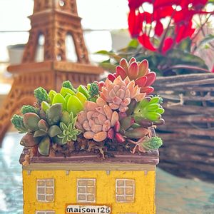 久しぶりの投稿です! 昨夏のマンションの大規模修繕が終わったあともベランダガーデンを構築出来ず、、、 あっという間に冬が来て手付かずの ただの洗濯物干ばと化していたベランダですが・・・ 1月に多肉植物に出会って、多肉ちゃんの魅力に取りつかれ❤️、 ベランダが多肉ガーデンに変わりつつあります✨ こちらは、初めて多肉植物の寄せ植えワークショップに参加して作った可愛いハウス🏠 また、色々投稿していきたいと思います😊