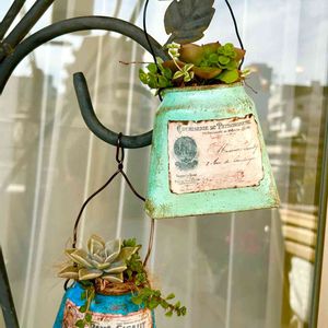 リメ缶バッグに寄せ植え🌵 ティファニーカラーを作って塗り塗り😊 この色のリメ缶作りすぎちゃった🤣