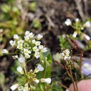 ミチタネツケバナらしい ミチタネツケバナ😁 これも主観です😅 種よりも花の方が 低い位置に咲いているのが ミチタネツケバナ、 高い方が タネツケバナ 見分け方、合ってますか?