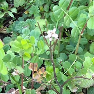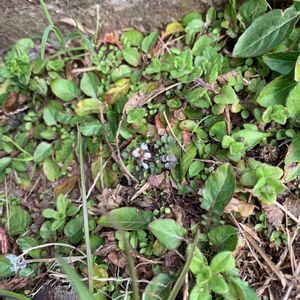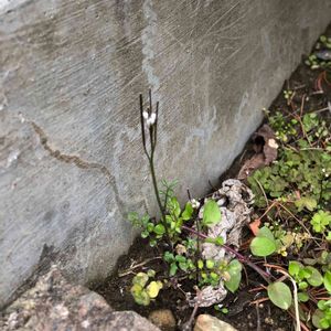 道脇の斜面に、超ちっこい「ミチタネツケバナ」の赤ちゃんが😍 ほんの2〜3cm、でもしっかりとロゼット展開してます。よく見たらカタバミの葉っぱ☘️が紛れ込んでるよ😆