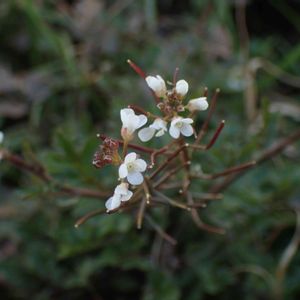 道種漬花(ミチタネツケバナ) アブラナ科タネツケバナ属の1年草。ヨーロッパ原産の帰化植物で、1970年代の鳥取県の標本が日本での初記録であり、1990年代以降急速に全国に拡大し、今ではどこにでも普通に見られる。日本在来の種漬花(タネツケバナ)によく似るが、種漬花が主に水辺に生えるのに対し、本種は乾燥した場所でも平気で、市街地や道端、芝生にも群生する。種漬花と異なり水田土中では種子が越夏できない。 本種の特徴は開花が早く、雄しべが4本の花が多く、果実は直立し、茎に葉があまり着かず、根生葉(こんせいよう💬根元から出る葉)が果時まで残る。 種漬花は雄しべが6本、果実は斜めにつき、茎にも葉が多く着き、根生葉は果時には枯れる。 種漬花の名前は、この花が咲く頃に稲の種籾を水に浸けて苗床をつくり田植えの準備をしたことが由来といわれる。 出典『植調 雑草大鑑』『日本帰化植物写真図鑑』『散歩の草花図鑑』