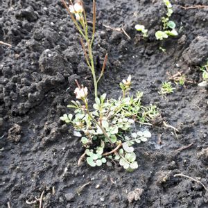 田んぼのあぜ道に咲いていました。何という植物かご教示ください🙇♂️ 花は2mmくらいの小さな花です。 当地は日本海側の降雪地域です☃️ (今季はまだ初雪のみ) →ご教示いただき、ミチタネツケバナとします☺️