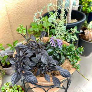 秋冬寄せ植え第4弾 観賞用とうがらし が主体の寄せ植え🪴 黄色っぽい実がつくとグッと見栄えがよくなるかな💛 黒っぽい葉に紫の花の "モナラベンダー" もこれから花が咲き茂るか期待です(☆▽☆)