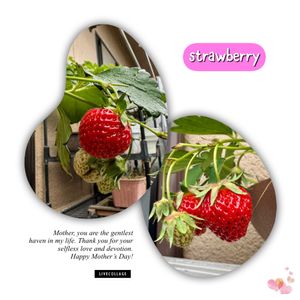 今朝、今期イチゴ初収穫🍓✨ 今年は不要な実を摘果し、充実した実にする様に心掛けています(^-^)♪ 早速アゴニちゃんにも味見してもらいましょ♡♡