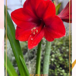 真っ赤な "アマリリス" 🌺 存在感がはんぱない✨ いつも茎が折れてしまうので棒で支え玄関内へ🚪 一年で1回の晴れ姿❤️𓂃 𓈒 皆んなに見てもらわないとね。♪:* 🦋サトキマダラヒカゲ🦋 2頭仲良くしてました💕