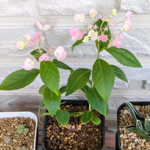 PWラグランジアです。クリスタルヴェールとオーロランジュが混ざってるはずですが違いが、、、同じ感じになりました。鉢植えなんですがうちの紫陽花は赤系で咲きます。酸度調整してないからかな。