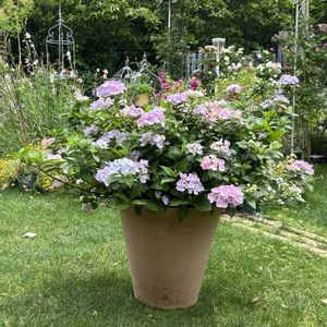 ラグランジア クリスタルヴェール PWさんの紫陽花 すっかり大きくなって咲きました 水道水だからかしら ピンクですね🩷 この花は🩵ブルーが美しいのに どーしたらブルーになるかしら🤔