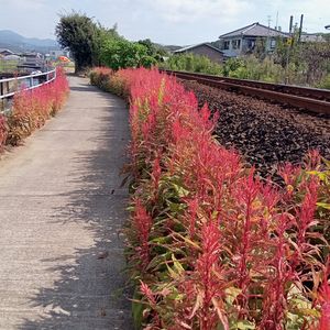 海散歩の線路沿い 今は千日紅と葉鶏頭がメイン 色鮮やかな葉がとてもいいです。🤗
