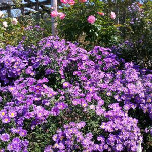 🌳我が家の🇫🇷フランス式庭園 夏を過ぎても三尺バーベナ咲いてます💜💜。 1︎⃣ 花壇外のこぼれ種 2︎⃣ 花壇