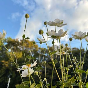 気持ちの良い秋晴れᕷ*.° お庭の秋明菊さんも🤍 青空に向かって気持ち良さそう🩵
