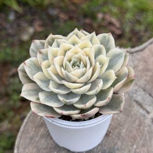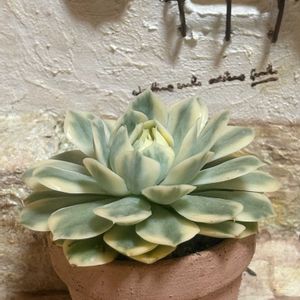 ご覧頂きありがとうございます♬ 「オウンスロー錦」エケベリア属 お迎えの時はチリ斑のような 斑が入ってましたが、現在はご覧の通り斑なしです💦 オウンスローとは、葉の形や成長点の部分が違うので、購入時のまま書いております。