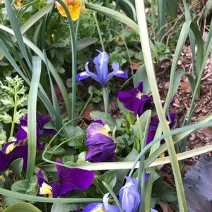 ミニアイリス・カロリーナ💙 アヤメ科の植物、大好きです。先発の寒咲きアヤメはまだ活躍中ですが、ミニアイリスちゃんも早咲きなんです。 球根を沢山植えたので庭のあちこちに、鮮やかなブルーがチラホラ✨ 地際にお花を咲かせますが、お花がまだ少ないこの時期には嬉しい存在です。 植えっぱなしでいいようですが、来年はもうちょっと増やしたいな💕