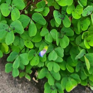 🏷「ブルークローバー」 親友に頂いたブルークローバー 今朝、開花寸前の蕾が見えました。 この雨風の中を昼間に咲いていたのかな? 親友いわく、早春の花の様です。 今日は蕾の日だからか🥰 此方は雨量は少なかったですけど、風が強かったです。 少し前に屋上に上がったら、35Lの薔薇の植木鉢が動いていました。 今朝は鉢棚の鉢も全部床に降ろして正解でした。 明日は開花が見れるかな🎶