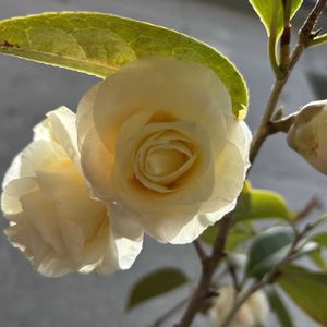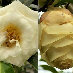 椿 黄の旋律 優しい黄色で、八重咲き。 金花茶と黄鳳の交配。 ふんわりした椿でした。