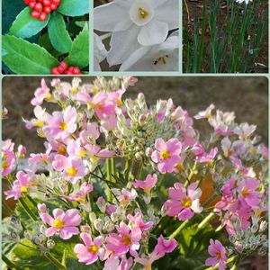 花木園で 🌿千両🌿 🌿スイセン🌿 🌿サクラソウ🌿 お正月前で綺麗にお庭が清掃されていました(^^) お花が少ないですけど咲いてました🌸