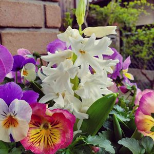 ダブルデッカーにした寄せ植から ヒヤシンスがチラリズム♥️
