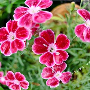 おはようございま〜す☀🥰 暑くなりますよ〜 体調管理して 水分補給も忘れずに ダイアンサス イチゴドロップ🍓 (❁2㌢強程) 小さなハンギングポットで 何年ものかな〜 元気です👍😍