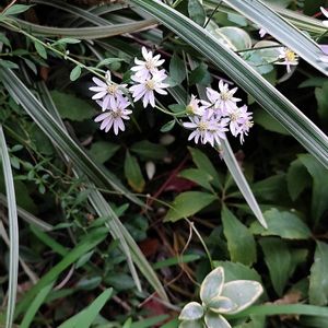 野紺菊ともそろそろ (@^^)/~~~バイバ~イ 足元には、 ヘレボルス原種クリスマスローズニゲルの蕾が、(地植え)