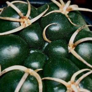 2年生のGreenRhinoって子✨✨ ホンモノなのか分からんが子株の頃から色が深〜い緑だったから気になって買った子😁❤️ まだまだ🦏サイ🦏的な立派な角はお預けみたいだけど、ちょっとずつ厳つい棘が見えてきた😆🙌 真ん中ネジネジとか連棘とか個性が出てくると楽しいし、季節斑がクッキリ出てるのも素敵🤭🎵 年末掃除でホコリ被って水やりしてないからドアップはホコリが目立つ😓💦 春が待ち遠しぃ❗❗