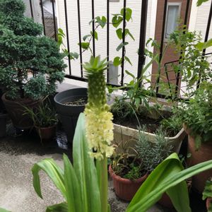 庭のパイナップルリリー(ユーコミス)です。 背が高く大きく育ってます。
