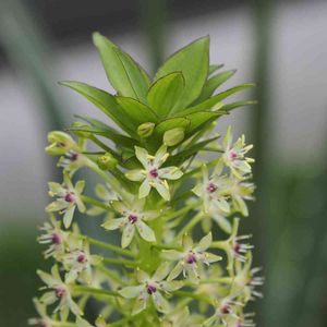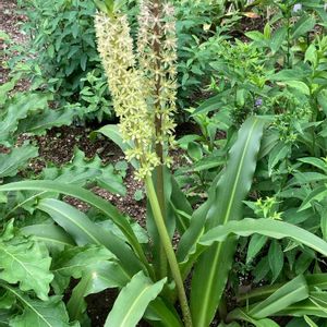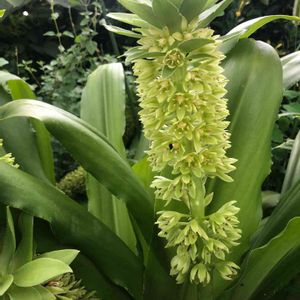 パイナップルリリー (ユーコミス) 蕾の姿はパイナップル🍍にしか見えません🤭 花が咲くと…パイナップル感は残っていますね🤣 一昨年までは見たいな〜と探していたのに、去年は割とあっさり見つかり、今年は結構目につくように…