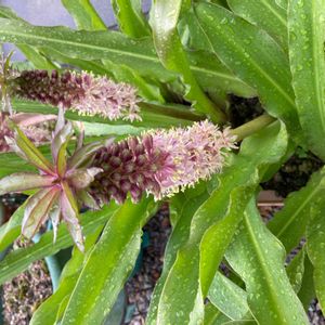 パイナップルリリーが咲きました🤗 手間暇がかからないので、もらってきた母はすっかり世話を放棄してます😂😂