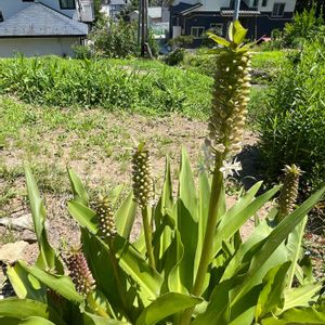 お友達の庭のパイナップルリリーです。ウチの花はここからきてくれました。有難う元気に育ってくれてます。