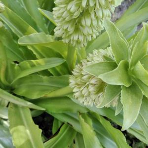 花なのか花が終わった後なのかよくわかりませんがよろしくお願いします🙇⤵️ ユーコミス(パイナップルリリー)のようです。ありがとうございました。タカネアオヤギソウかとも迷いましたが⁉️ ミヤマバイケイソウも候補かなと?