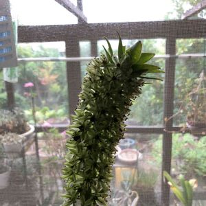 ユーコミス、別名パイナップルリリーです。これは実生です。育てやすくて花持ちもよく安価なので初心者にもおすすめです。ちなみに食べられません。