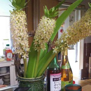 パイナップルリリー。 ひとつひとつの花が開いてきました。 鮮やかな色の花もいいけど、 白い花って別格って気もする。
