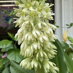 パイナップルリリー🍍🌿 以前頂いたものですが毎年咲いてくれます♪ どんどん株が増えるけど 花数少ないです~(๑¯∇¯๑)