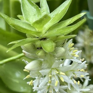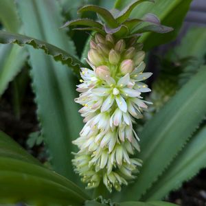 ユーコミス・プンクタータ 透明感のある花、 葉のエッジもフリルで 美しい夏の花です。