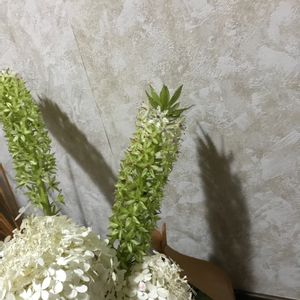 ユーコミス・パイナップルリリー 痩せっちが伸びてきました😅 蕾のうちがパイナップルらしいかも🍍 育て方を調べず… 枯れたと思ってバックヤードに捨てた鉢からの発芽🌱 そして開花でした🤭