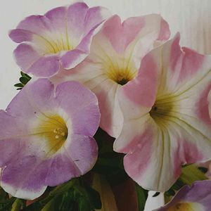 おはようございます🌸 昨年、サフィニアアート ももいろハート❤️が可愛くて もりもり増えたので、今年も購入しようと思っていたのですが、昨年の株が復活して花をつけたので いちごシェイクを購入😊 左側がいちごシェイク 右側がももいろハート カットした花です🌸