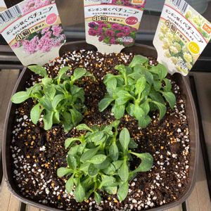園芸コーナー寄り道したら 可愛いコ達を発見😍💕お迎えしました いちごシェイク🍓 サフィニアブーケ ゴールド💛 スーパーベナ アイストゥインクル💜