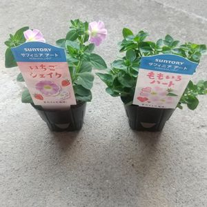 昨日買ったサフィニア ラベンダーレース 今日買ったサフィニアアートのいちごシェイクと小梅ちゃん💕 買って満足じゃなく頑張って育てるぞ👊 買いすぎだって家族に怒られました😭 でもまだ欲しい花があるぅ〜🫣