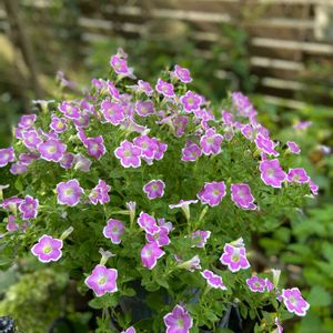 サフィニア「いちごシェイク」 やや徒長気味ですが ふんわり咲いています