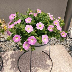 サフィニアアート いちごシェイク♡ 柔らかいピンクで優しい♪ 咲き始めは白い部分が多く、次第に縁だけ白に。 最後は全体がピンクで終わります💓 4/17に6号鉢に2株植え込み、4/20に摘心〜✂️ 摘心からひと月後の様子です。 つぼみは結構見えますが、お花はポツポツとしか咲かず、わっ‼︎ とならないですねえ〜🥹 これからそうなるのかなあ⁉️