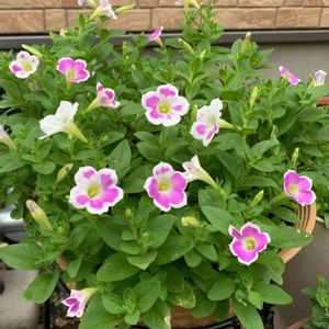 サフィニア いちごシェイク 頑張ってるんですけどもう少しモリモリに咲かないかな🤔 白いのがあるなと思ってたらタグに色変わりするって書いてあったからこれが本来の姿みたいです。