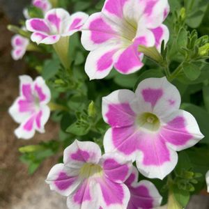 サフィニアアート いちごシェイク🍓 切り戻し後の復活が早い〜〜 ダントツです。 トラネコや江戸しぼりも育てやすいそうなので来年もサフィニアアートシリーズから一つはお迎えしようかな うちのいちごシェイクはピンクと白の混ざり方がいろいろだけど、だからシェイクなのかしら?