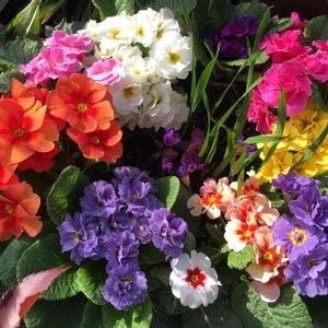 こんにちは😃3/17 大阪15℃快晴 朝から 暖かくなってきました🎶 ベランダのプリムラの苗が 成長してお花が沢山🎶 🌸🌺💜💛💙❤️🎶 咲いて来ましたよ🎶 プリムラ全般の花言葉 青春の始まりと悲しみ 青春の恋 赤色 美の秘密 後援のない功績 紫色 信頼 など💜💛💙❤️