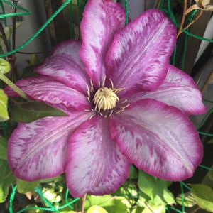 おはようございます🌞 4/7大阪13℃(最低8℃) ベランダで淡い赤紫色の クレマチスのお花❤️💜 1番花が咲きました💕 大きな素敵なお花です😍