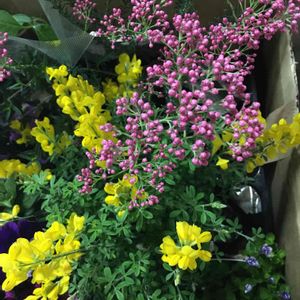 おはようございます🎵 4/22大阪16℃快晴 きょうは、もっと暖かい日に なりそうです〰︎🌸 エニシダ🌼とライスフラワー🌸 咲いています🎶🌼🌸