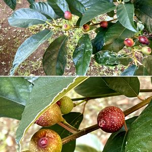 謎の実、発見 これ何でしょうか? マンションの植込みで見つけました 何年も住んでいるのに、初めて気付いた 花も咲いていたのかなぁ? これから赤くなっていきそうです