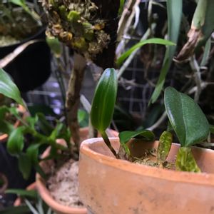 冬場のラックに押し込められた時期に咲くので(しかも花芽が細くて、それとは気づかず気根と見間違えてたりして)、いつの間にか咲いてて花が終わってたりするかわいそうな子。 昨年は夏の管理が不十分だったせいで花芽は多分これひとつ。しかもちっちゃい!でも、タイミングよく咲き始めに気がついてお披露目となりました。 バルボフィラム マキシラレ Bulbophyllum maxillare フィリピン、ボルネオ/カリマンタン、マレー半島~オーストラリアの熱帯アジアに広く分布する。 ずっとバルボフィラム ブルメイで覚えていて、つい最近までその名で呼んでたし、一般的にもブルメイという名が浸透してるかと思いますが、最近上記の名前に変わってたみたいですね。 なんでも、ブルメイという名は命名の際に不手際というか、ルール違反があったらしく、学名としては失格名ということらしいです。 寒さにあまり強くなく、この個体はうちでは2代目ですが、初代は一晩で真っ黒になって枯れました。 広域分布種で地域変異もある種なので、ある程度の寒さに強い系統もあるのかもしれませんが、あの枯れ方がトラウマになって、かなり過保護に育ててます。そのせいか、株だけはどんどん大きくなります。元々夏場の生育は旺盛な種ですね。