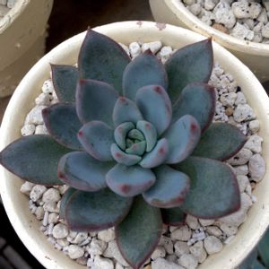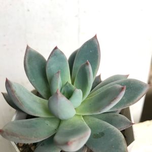 緑色の多肉ばかりの中、目を引くブルーグレイの子。 爪のピンクがアクセント♪(´ε` )
