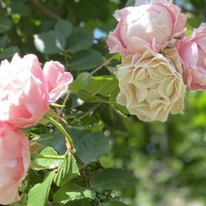 先日のpicと似たような感じですが、この前のより12日後なのです💕✨ うちでは少し遅咲きのバレリーナともコラボしてくれるベルオブウォッキングちゃん💜🎶 ほんとうに花持ちがいいです〜👍🏻🌿 これからバラとのコラボを考えておられる方には、ウォッキングちゃんはほんとにオススメですよ〜⸜(* ॑꒳ˆ * )⋆*❤︎✨🌸 この子 よくベルオブウォーキング と表記されていますが、本当はウォッキングなのだそうです。私も最初はウォーキングだと思っていて、なぜそんな名前なのかな?全然お散歩感もないのに‥‥って思っていたら、天空のバラの五線譜さんに『イギリスのウォッキングという町で生まれた品種なのだそうです』と教わりました☺たしかに、英語だと Belle of Woking ですもんね。ウォーキングなら【Walking】のはず🐾 でも、検索するとすでにウォーキングの名の方が多いのです💦 間違った名前で流通しちゃったのですね〜😅💧 そして ダフネの色は変わりし始めた頃🤍✨ダフネとの組み合わせだったら長〜〜くお花を楽しめます🎶最強ペアかも(*≧艸≦)✨‼️ ✺5月の庭より✺ nyaco’s rose 2020 spring No.32 バレリーナ⑤ No.50 アンティークレース④ No.12 ダフネ⑤ No.16 ロマンティックチュチュ② No.25 グラニー④ No.49 桃香③ スミマセン💧ちょっと投稿し直したので 二回見てる方もおられるかもです😓