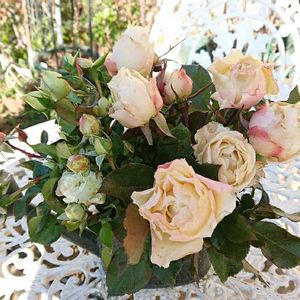 新しく花瓶を買ったので 庭の薔薇でアレンジ💐 今日は部屋の中で薔薇の香りに 癒されてます🌹✨🌹✨🌹✨